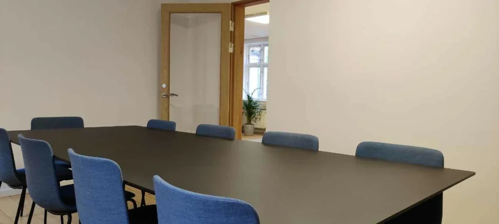 Vores mødelokaler på tværs af kontorfællesskaberne kan bookes online og er til fri afbenyttelse for vores lejere.